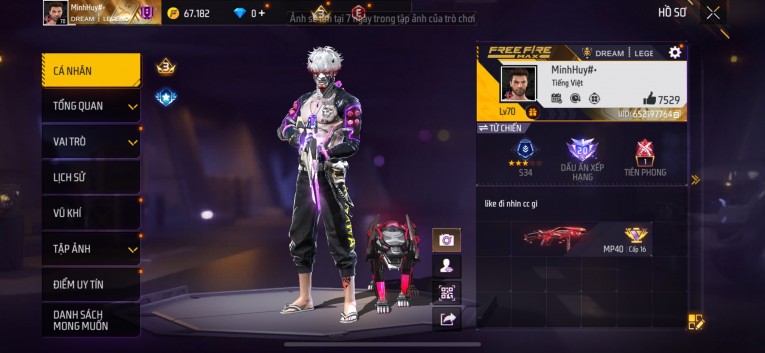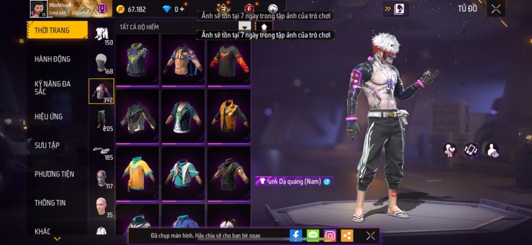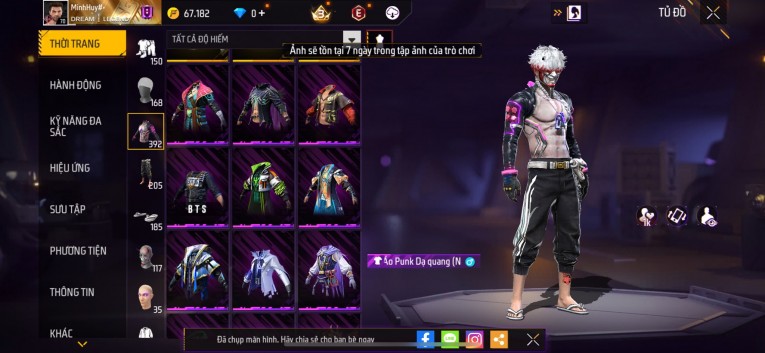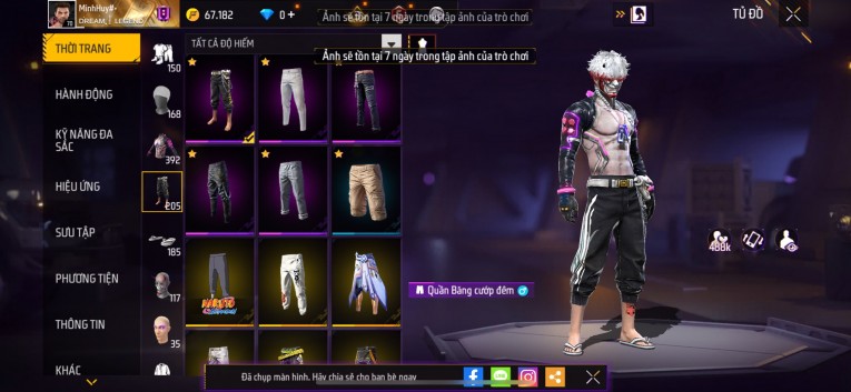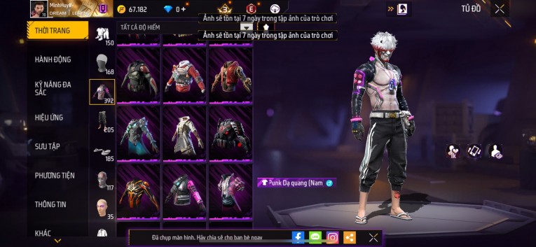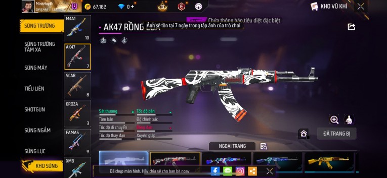 Acc chơi lâu, nhiều skin súng xịn, đầy đủ áo và phụ kiện nam. Đồ đủ dùng, đẹp mắt – vào chơi là chiến ngay! Phù hợp anh em thích skin đẹp, súng mạnh, acc ổn định.