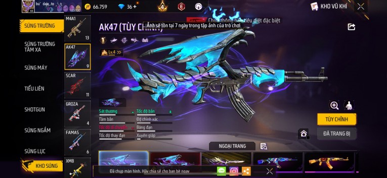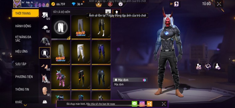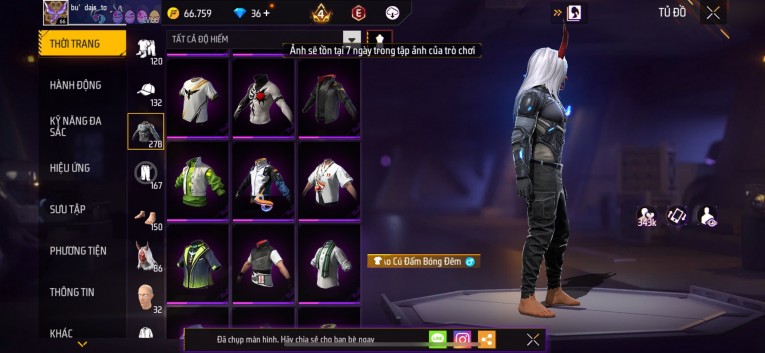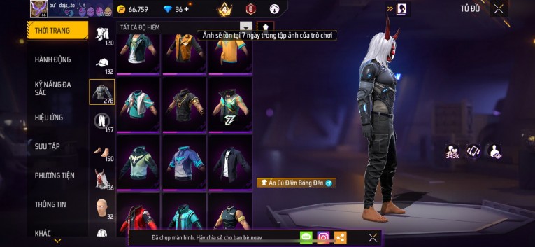 Acc chơi lâu, nhiều skin súng xịn, đầy đủ áo và phụ kiện nam. Đồ đủ dùng, đẹp mắt – vào chơi là chiến ngay! Phù hợp anh em thích skin đẹp, súng mạnh, acc ổn định.