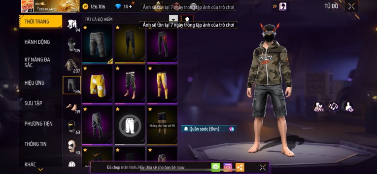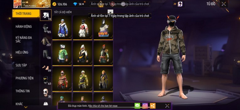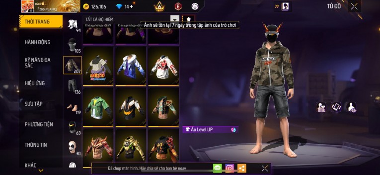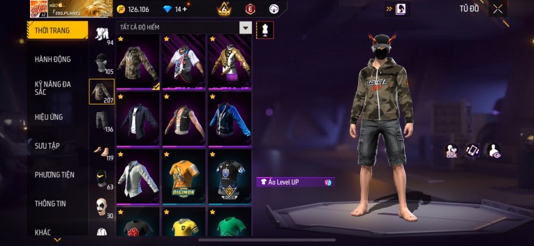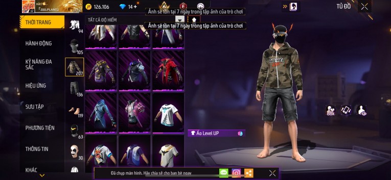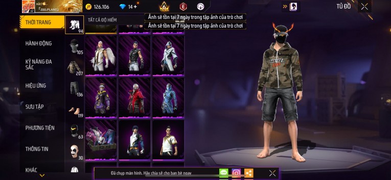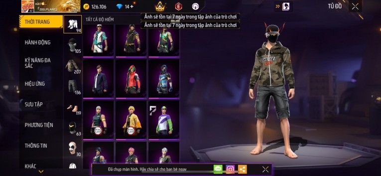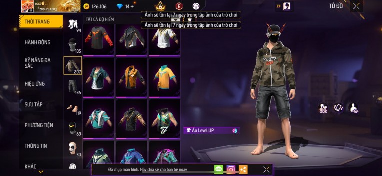 Acc chơi lâu, nhiều skin súng xịn, đầy đủ áo và phụ kiện nam. Đồ đủ dùng, đẹp mắt – vào chơi là chiến ngay! Phù hợp anh em thích skin đẹp, súng mạnh, acc ổn định.