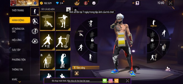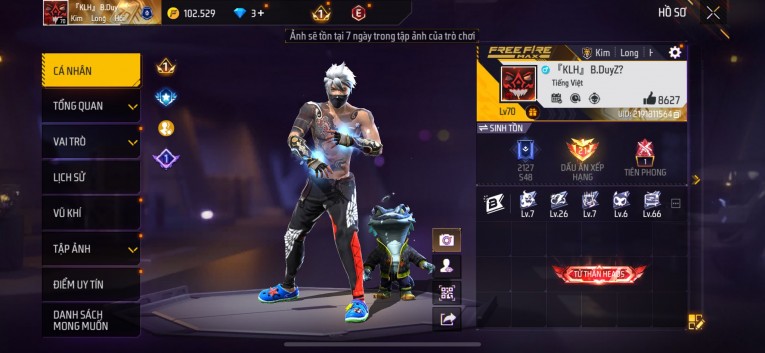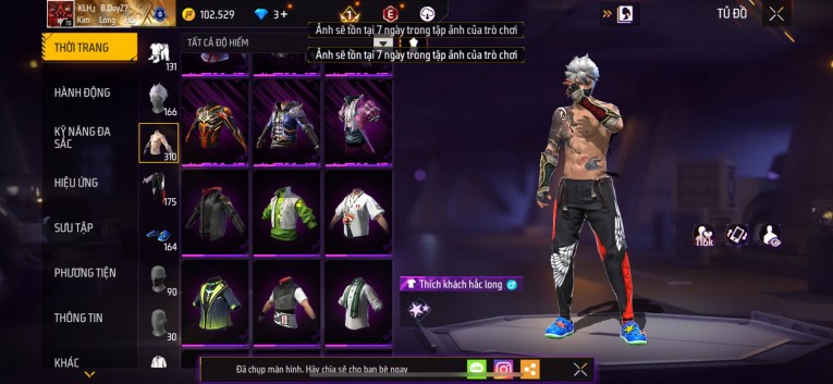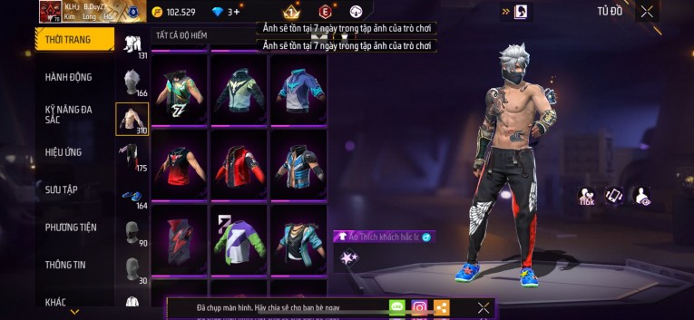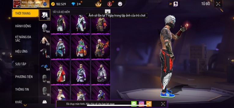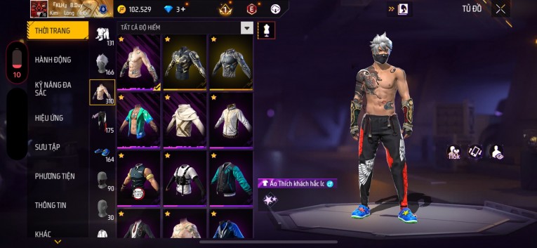 Acc chơi lâu, nhiều skin súng xịn, đầy đủ áo và phụ kiện nam. Đồ đủ dùng, đẹp mắt – vào chơi là chiến ngay! Phù hợp anh em thích skin đẹp, súng mạnh, acc ổn định.