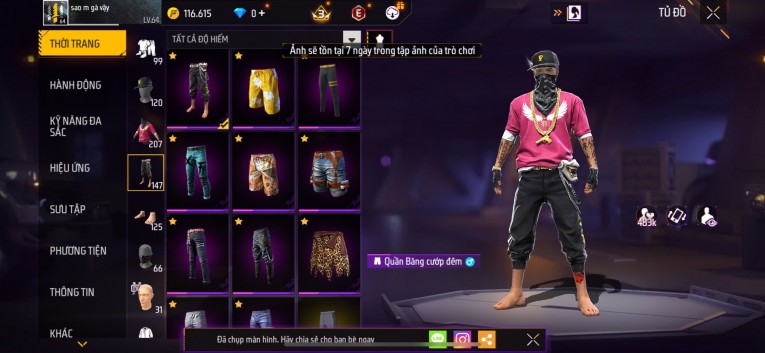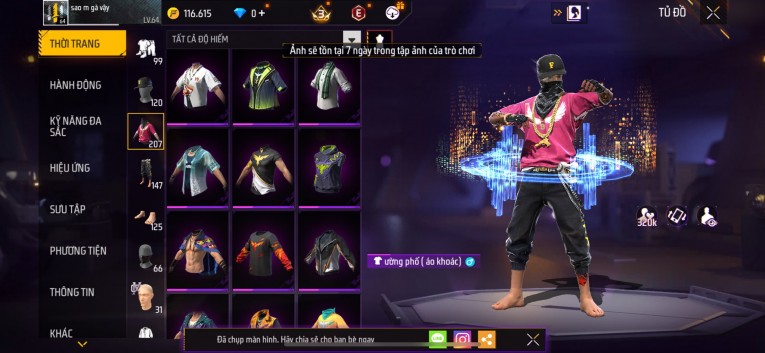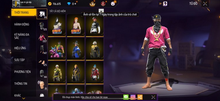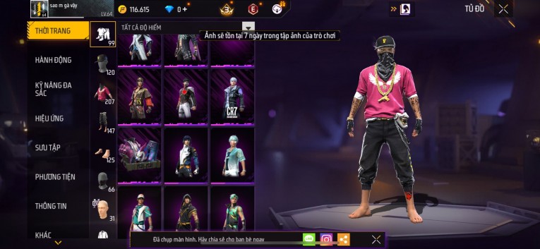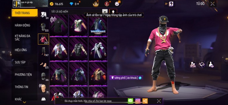 Acc chơi lâu, nhiều skin súng xịn, đầy đủ áo và phụ kiện nam. Đồ đủ dùng, đẹp mắt – vào chơi là chiến ngay! Phù hợp anh em thích skin đẹp, súng mạnh, acc ổn định.