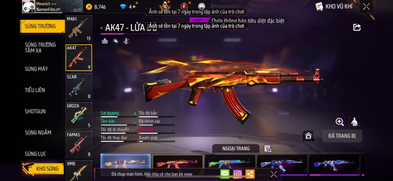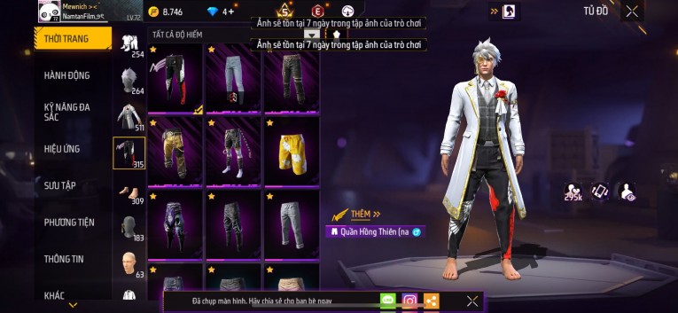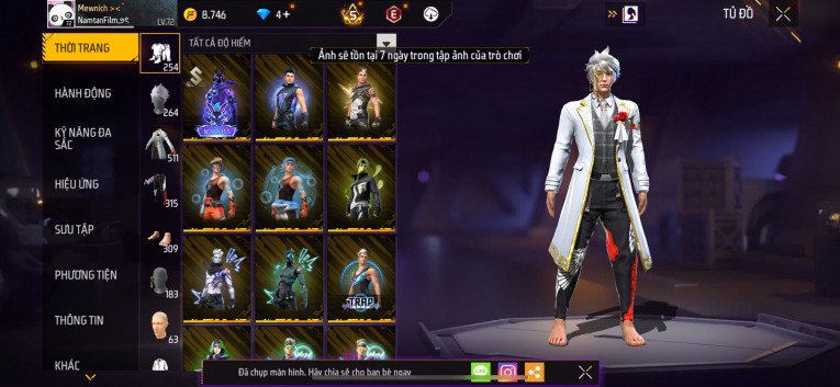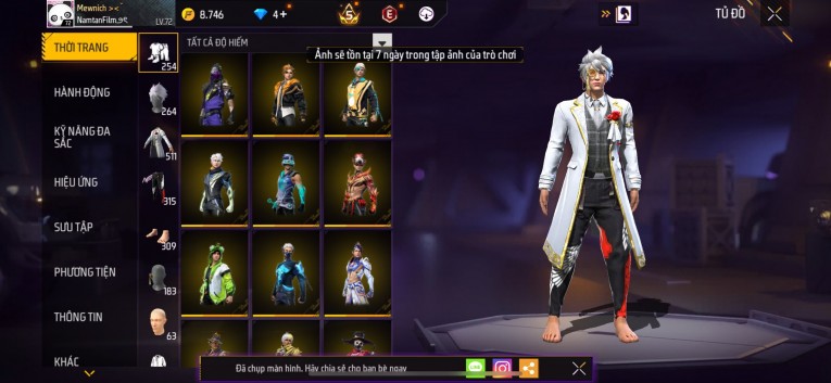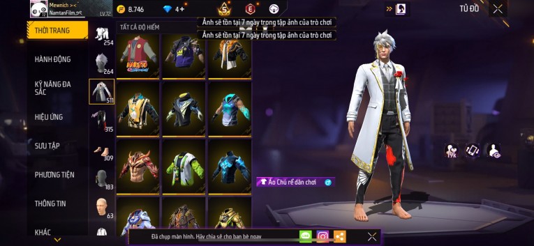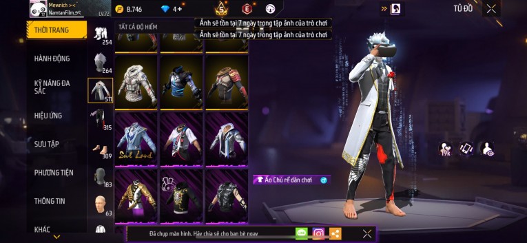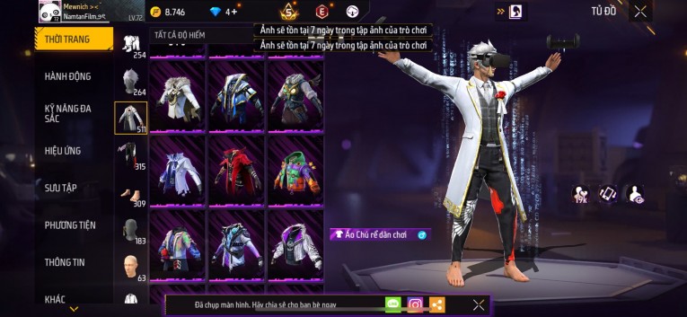 Acc chơi lâu, nhiều skin súng xịn, đầy đủ áo và phụ kiện nam. Đồ đủ dùng, đẹp mắt – vào chơi là chiến ngay! Phù hợp anh em thích skin đẹp, súng mạnh, acc ổn định.