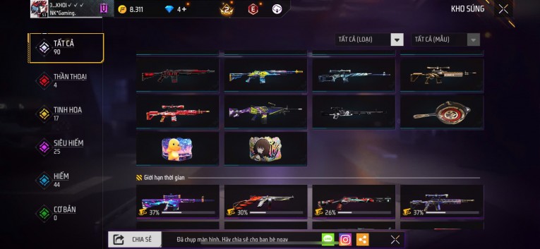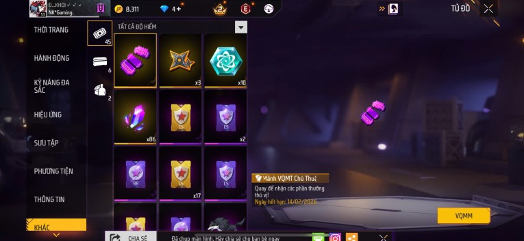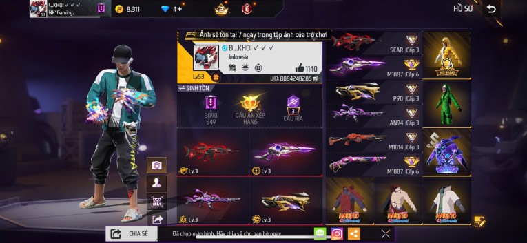 BÁN ACC FREEFIRE SIÊU PHẨM - VIP 8 GIÁ TRÊN 1 TRIỆU