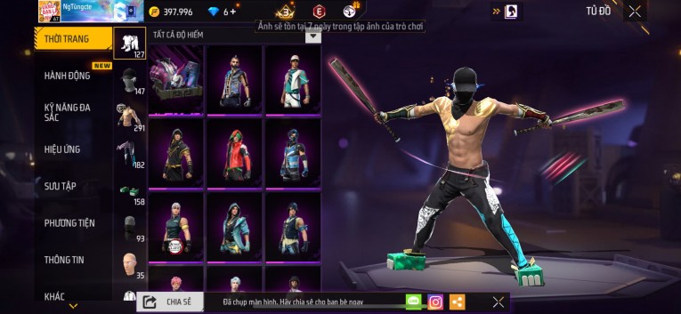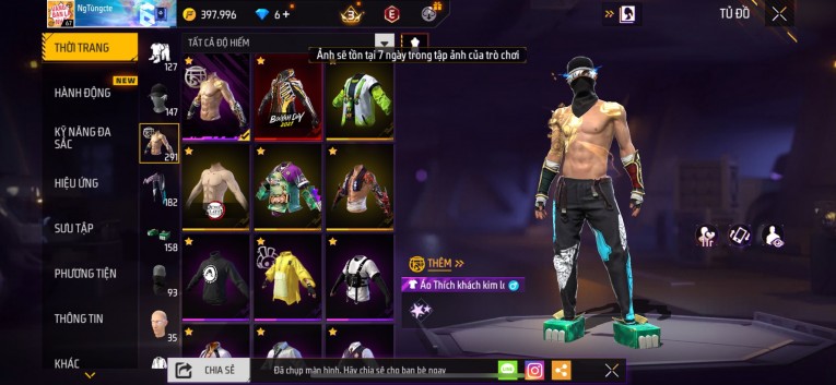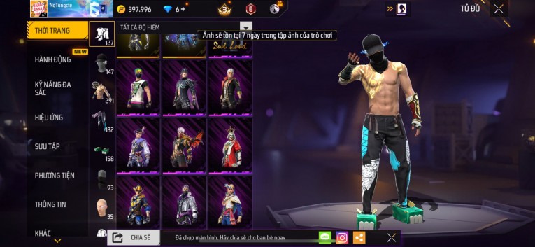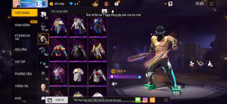 Acc chơi lâu, nhiều skin súng xịn, đầy đủ áo và phụ kiện nam. Đồ đủ dùng, đẹp mắt – vào chơi là chiến ngay! Phù hợp anh em thích skin đẹp, súng mạnh, acc ổn định.