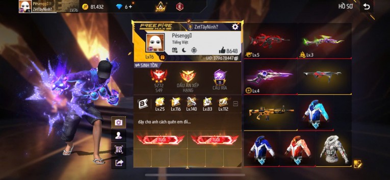 BÁN ACC FREEFIRE SIÊU PHẨM - VIP 8 GIÁ TRÊN 1 TRIỆU