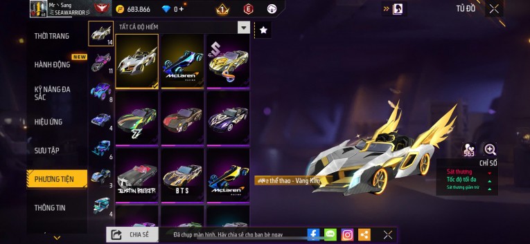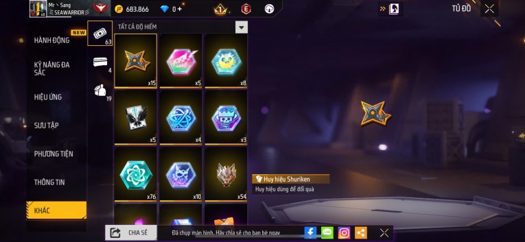 BÁN ACC FREEFIRE SIÊU PHẨM - VIP 8 GIÁ TRÊN 1 TRIỆU