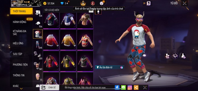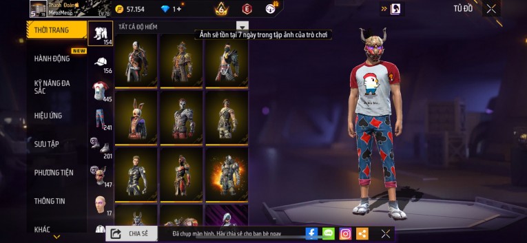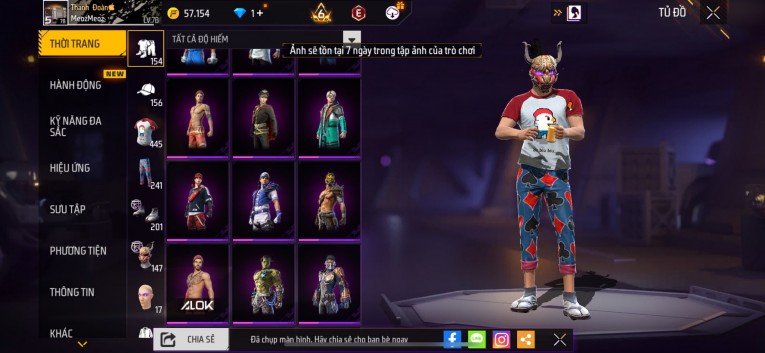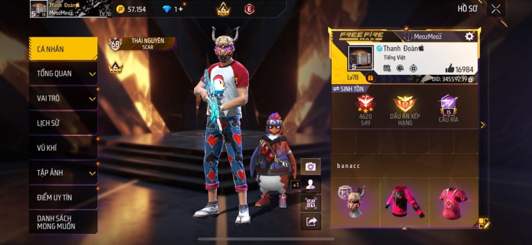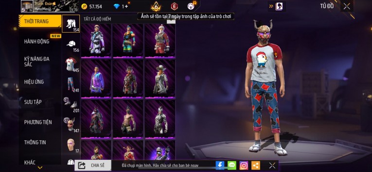 nổi bật: Acc chơi lâu, nhiều skin súng xịn, đầy đủ áo và phụ kiện nam. Đồ đủ dùng, đẹp mắt – vào chơi là chiến ngay! Phù hợp anh em thích skin đẹp, súng mạnh, acc ổn định.