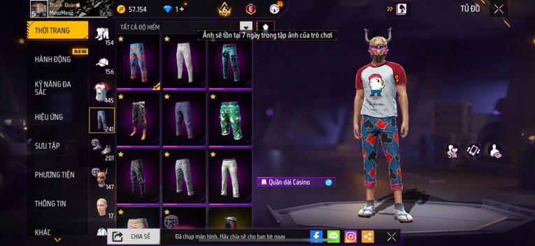 Acc chơi lâu, nhiều skin súng xịn, đầy đủ áo và phụ kiện nam. Đồ đủ dùng, đẹp mắt – vào chơi là chiến ngay! Phù hợp anh em thích skin đẹp, súng mạnh, acc ổn định.