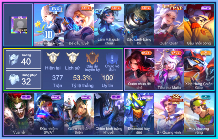 ⭐ Acc giống như hình, rank có thể là rank mùa cũ ⭐