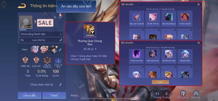 BÁN ACC LIÊN QUÂN REG CỜ NHON - SKIN SS SSS HỮU HẠN