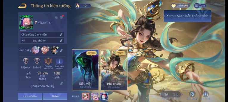 BÁN ACC LIÊN QUÂN REG CỜ NHON - SKIN SS SSS HỮU HẠN