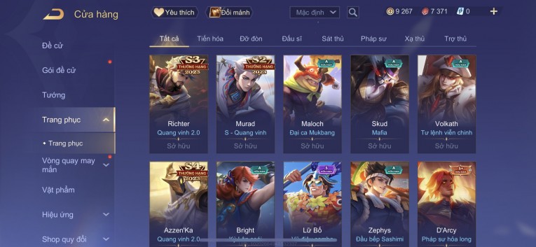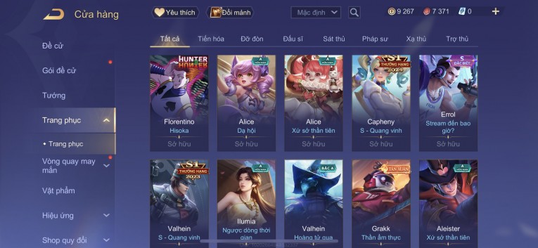 BÁN ACC LIÊN QUÂN REG CỜ NHON - SKIN SS SSS HỮU HẠN
